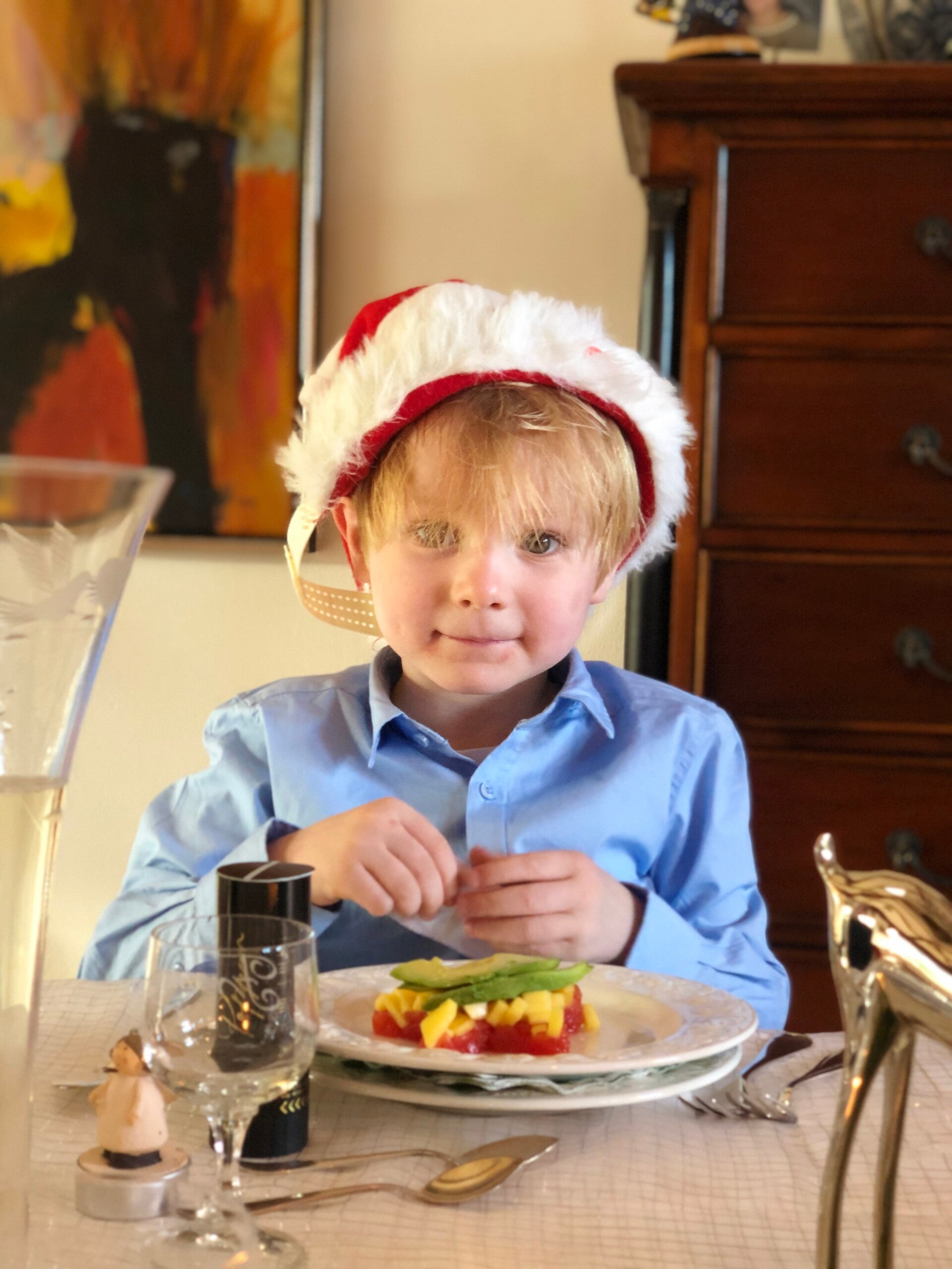 Bij een diner willen de jongens graag aan de grote-mensen-tafel zitten en ook mee-eten met de grote mensen. Dus als we meerdere gangen hebben dan proberen we deze ook voor de jongens te maken, maar dan kids proof.