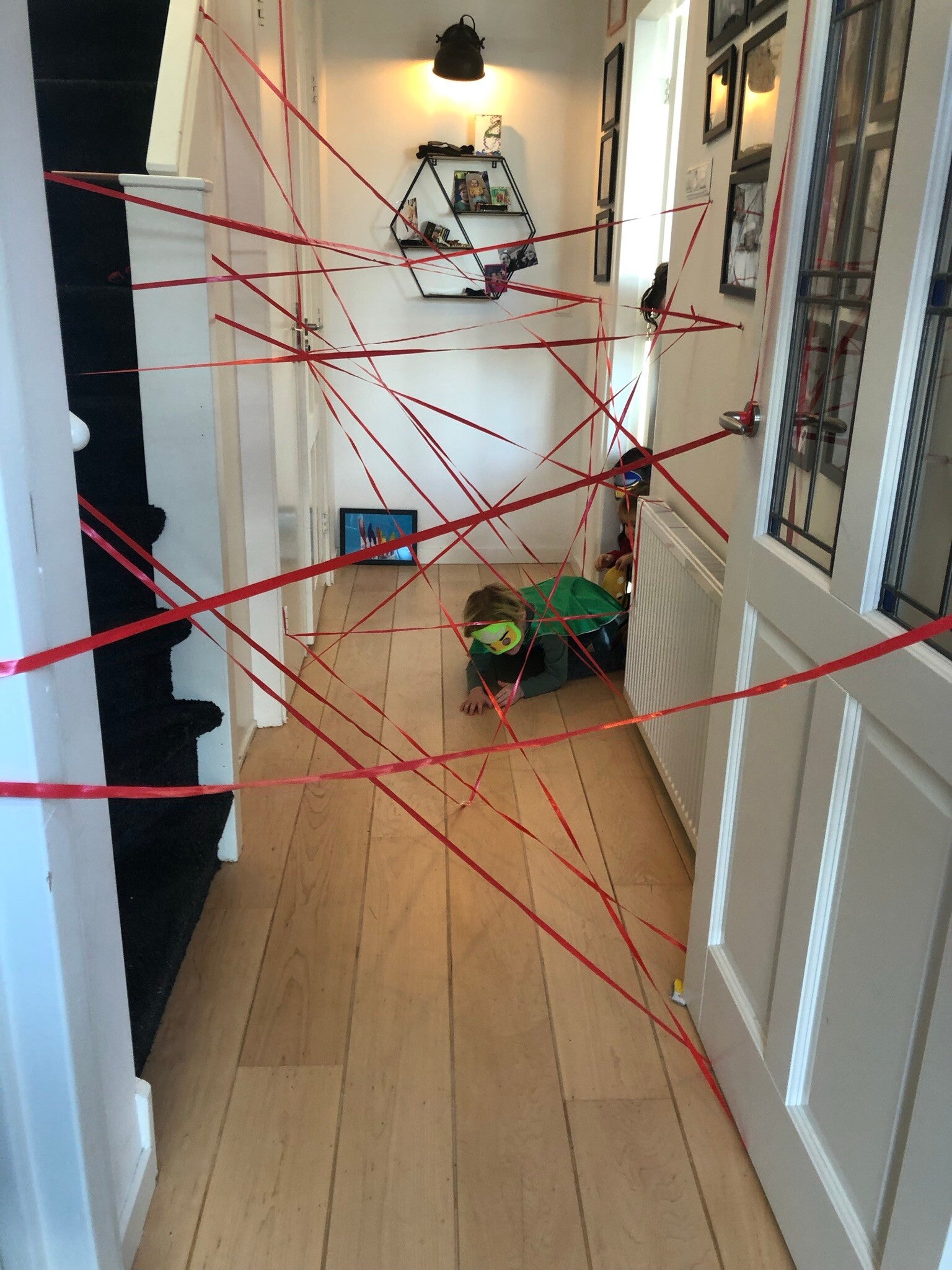 Start de tocht met een echt laserparcours waar ze onder, boven en tussendoor moeten kruipen.
